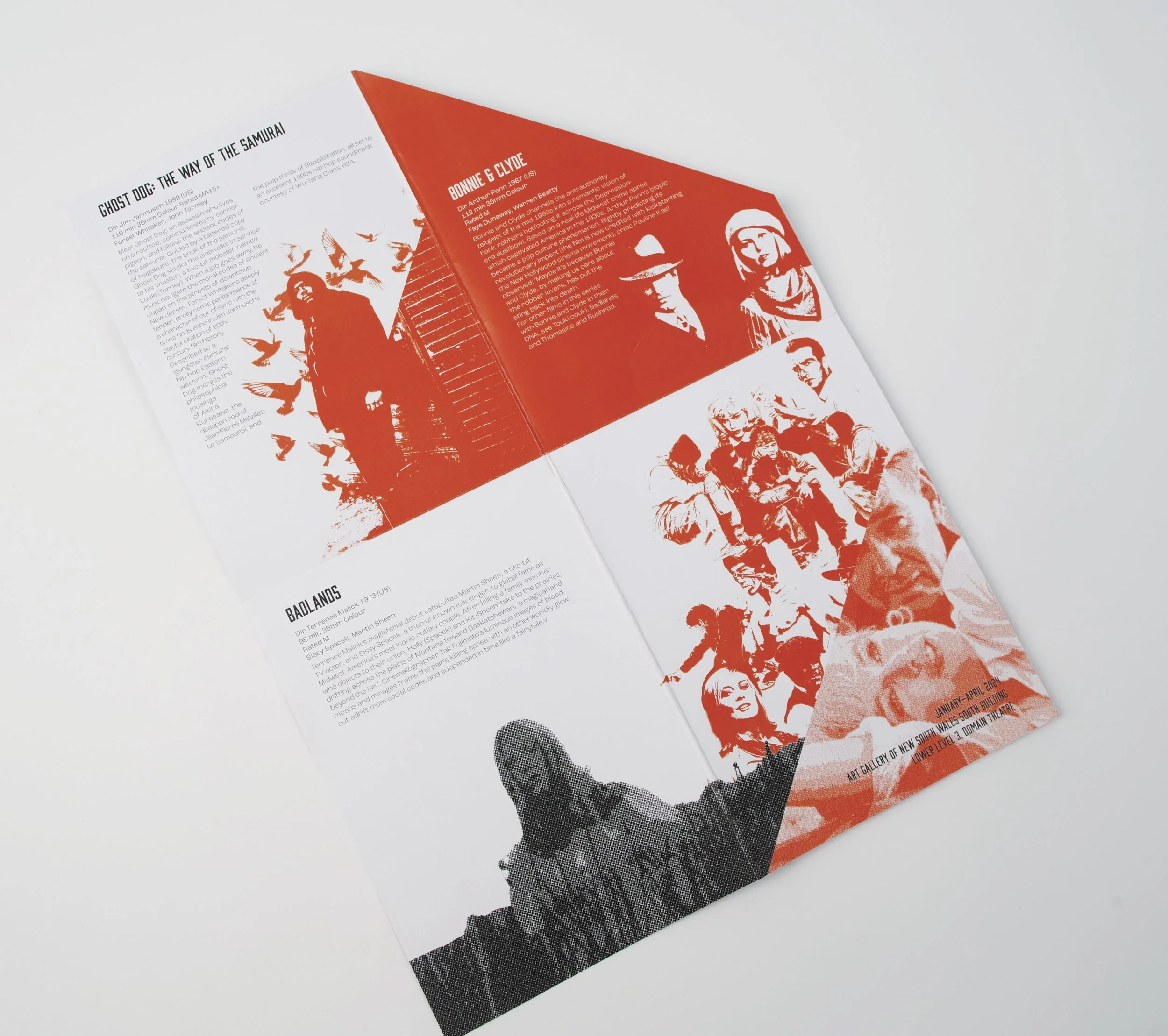 The sliced corner allows for a window to the back page, showcasing the festival information cleanly.