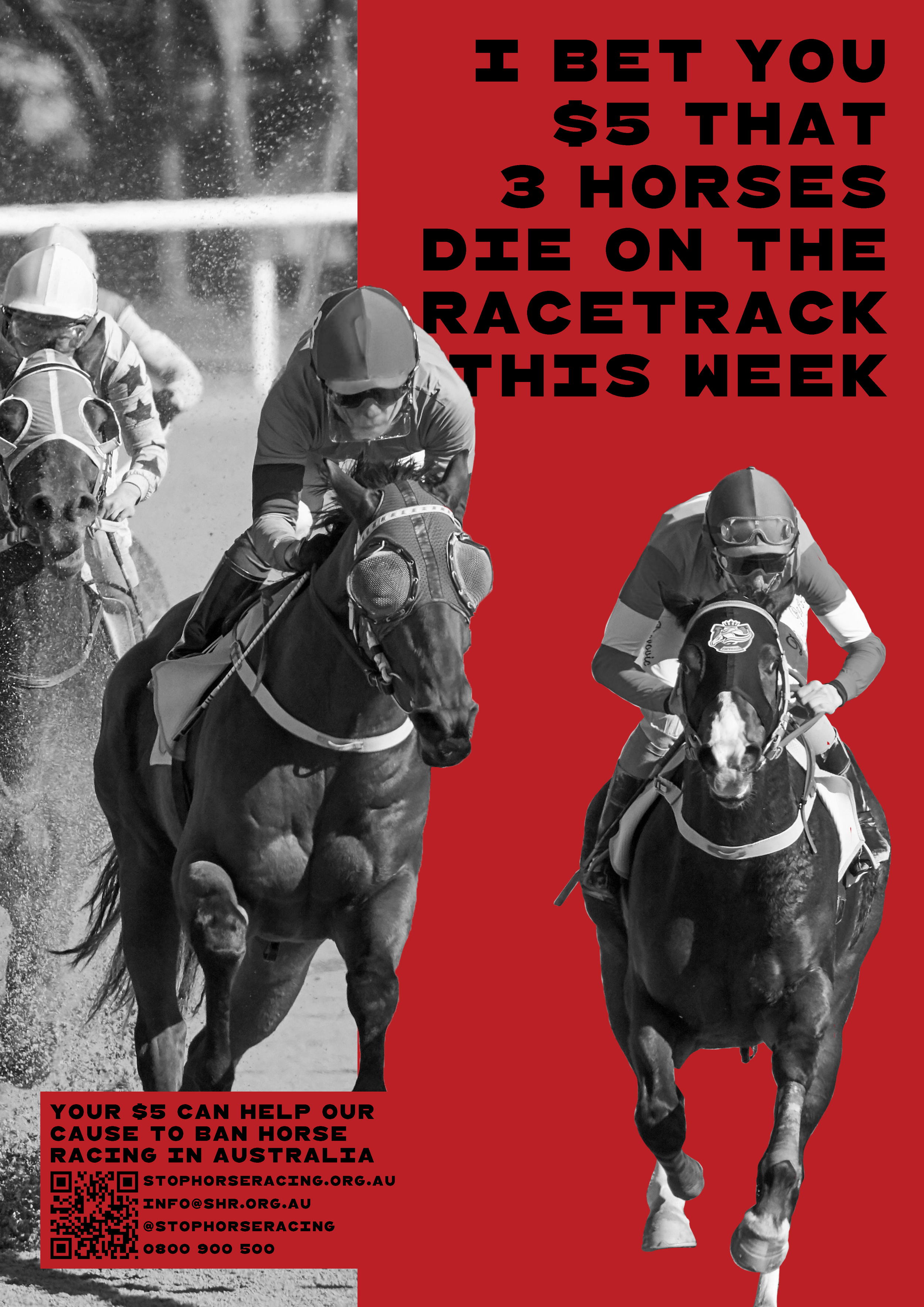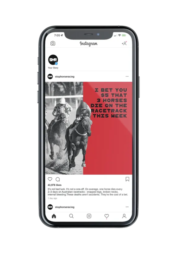 As the Melbourne Cup was approaching, an annual horse race with millions of supporters, I decided to conceptualise a charity campaign against this sport. The idea behind this campaign was to link both the gambling and animal cruelty aspects of horse racing, engaging people with the catchy yet confronting headlines as well as vibrant colours / graphics.